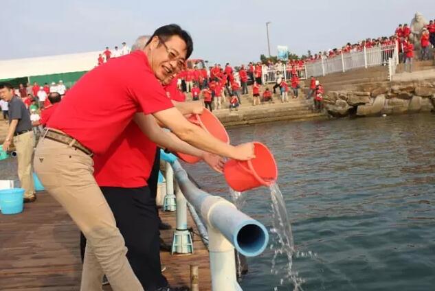 比赛期间,光威集团还组织了以“保护海洋资源 共建绿色家园”为主题的2016光威鱼苗放流公益活动,与会嘉宾、选手积极参加其中,一起在威海小石岛景区放流黑鲪鱼苗5万尾。
