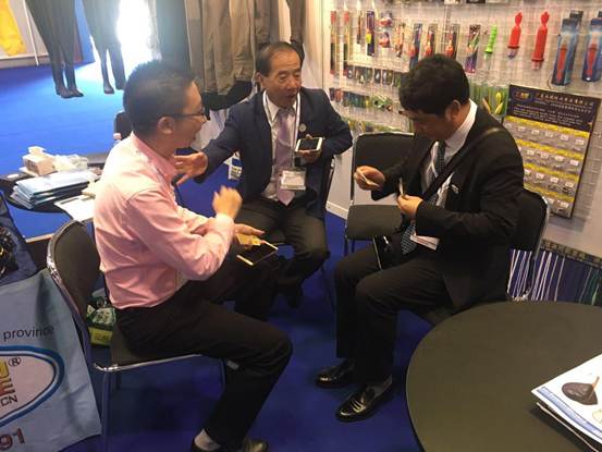受中国文教体育用品协会理事长易晓俐委托,展会期间,田宝全秘书长走访看望了参加欧洲钓具展的钓具专业委员会会员单位,包括:黑金刚钓具、兴泰钓具、永煌钓具、雅斯佳钓具、海宝钓具等。此外,很多国内钓具生产商来到钓具专业委员会的展位,与田宝全秘书长共同商谈钓具行业发展的相关问题。
